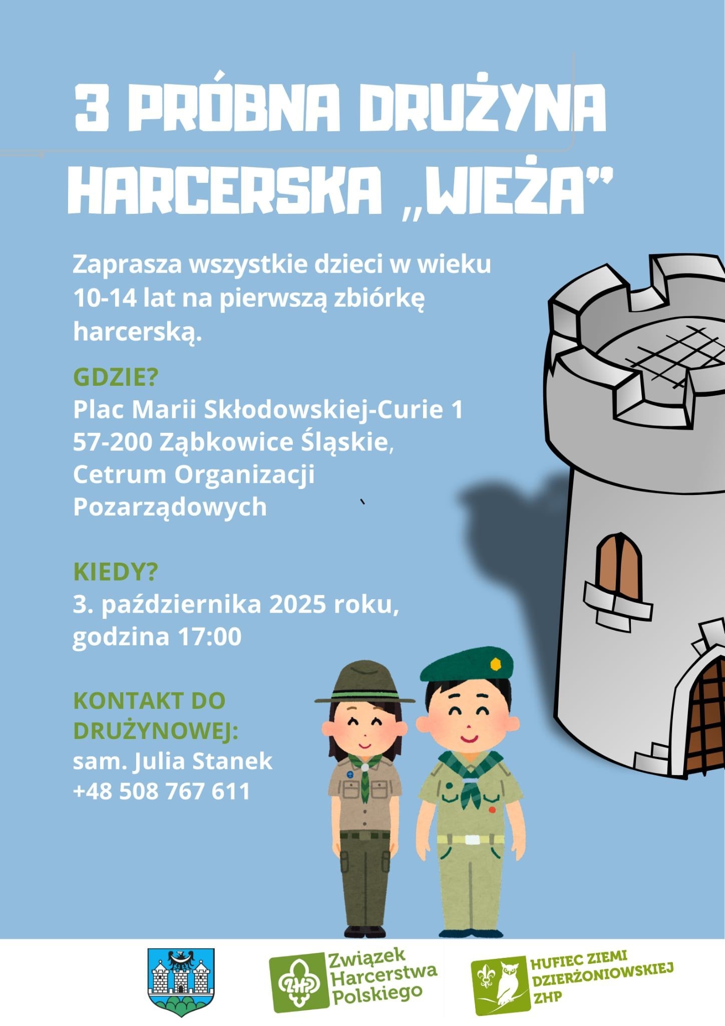 Już wkrótce dzieci z Ząbkowic Śląskich i okolic będą miały okazję dołączyć do nowo powstałej 3. Próbnej Drużyny Harcerskiej „Wieża”.