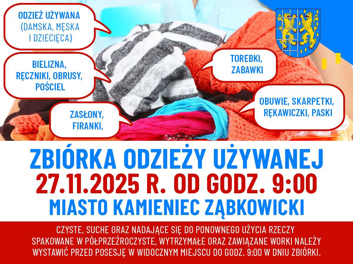 27 listopada w Kamieńcu Ząbkowickim rusza zbiórka odzieży używanej oraz innych tekstyliów, które trafią do osób potrzebujących. To doskonały moment, aby zrobić porządki w szafie i jednocześnie wesprzeć tych, którym brakuje podstawowych rzeczy na zimę.