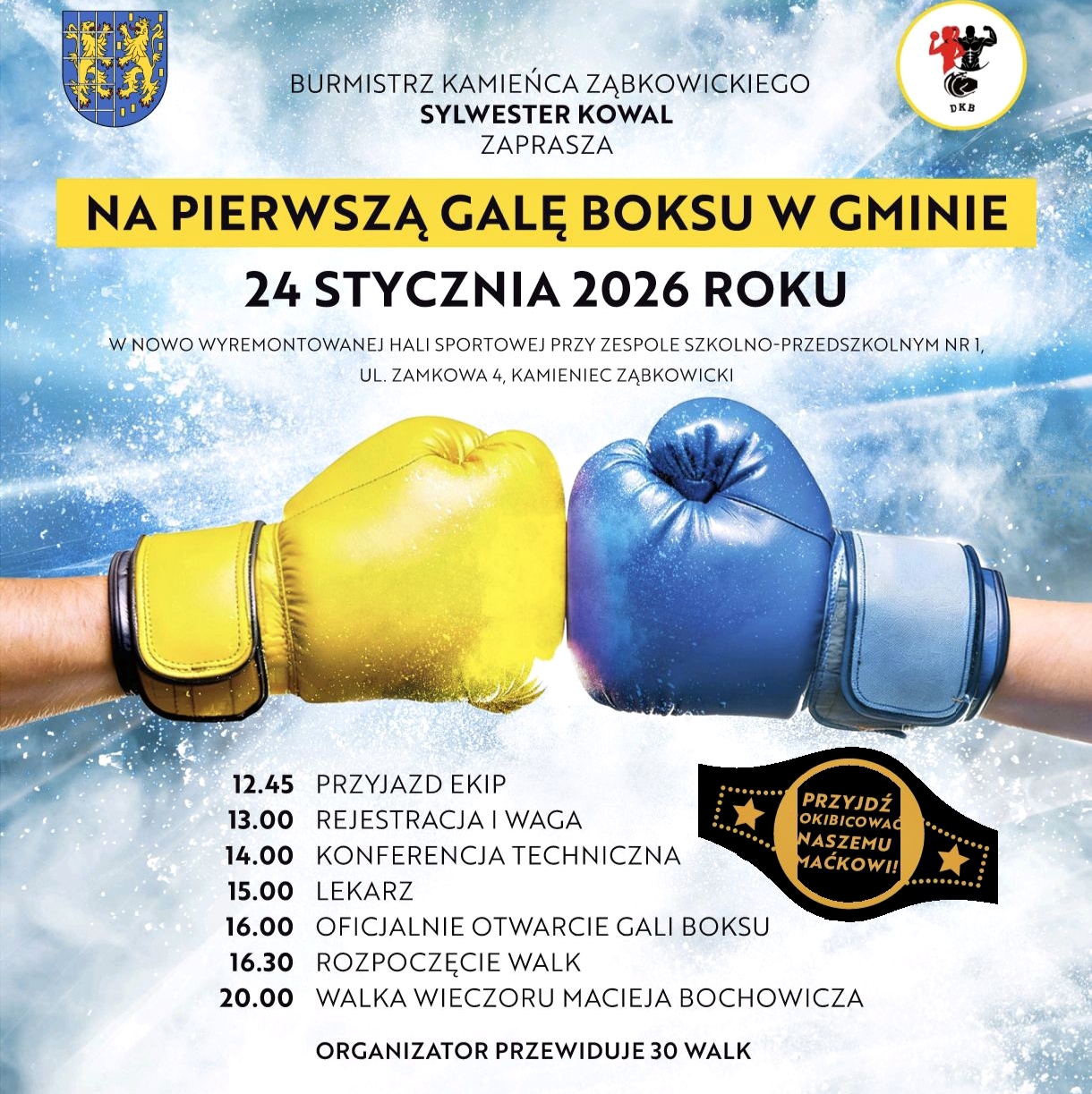 Sportowe emocje po raz pierwszy zagoszczą w Kamieńcu Ząbkowickim w takiej formie. Już 24 stycznia odbędzie się gala boksu, na którą zaprasza burmistrz Sylwester Kowal.
