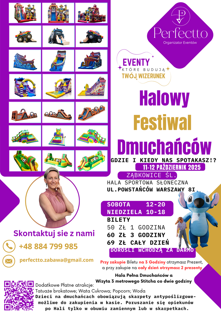 Nie przegapcie tej wspaniałej okazji na niezapomnianą zabawę! Halowy Festiwal Dmuchańców PERFECTTO, to gwarancja uśmiechów, radości i aktywności fizycznej w bezpiecznym, kolorowym świecie pełnym atrakcji. Przyjdźcie i pozwólcie swoim pociechom przeżyć przygodę, którą zapamiętają na długo!