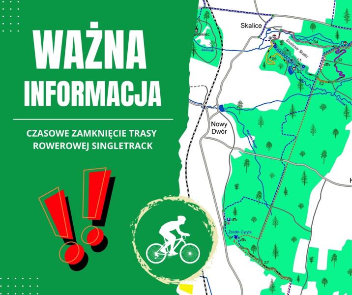 Od 7 października do 30 listopada zamknięte zostają odcinki Singletrack: sekcja 4 (Skalice) i sekcja 7 (Źródło Cyryla).