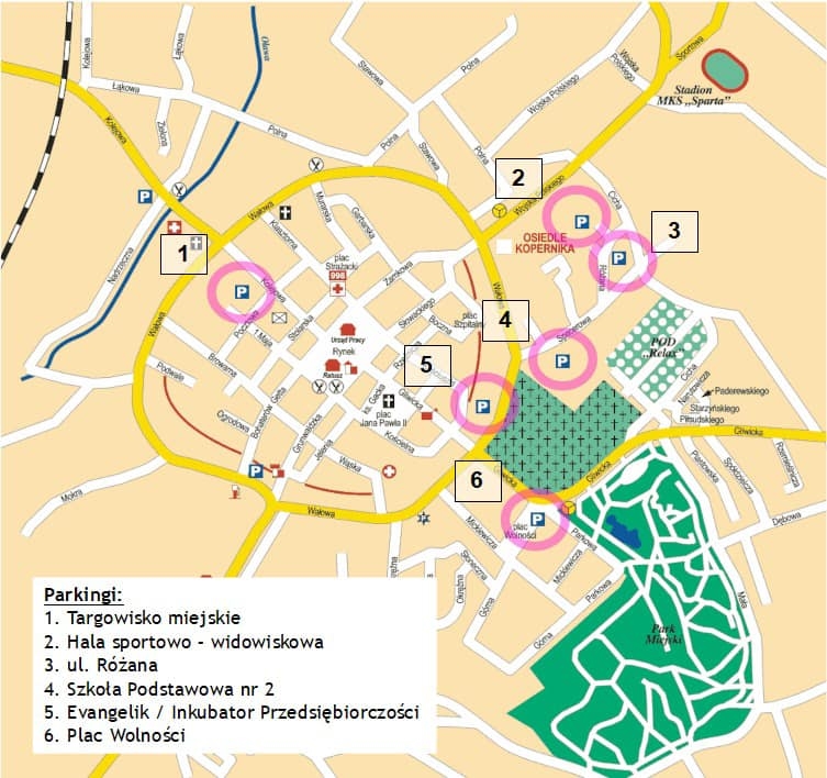 Pojazdy będzie można zostawić na parkingach przy targowisku miejskim, hali sportowo-widowiskowej, ul. Różanej, szkole podstawowej nr 2, Evangeliku i Ziębickim Inkubatorze Przedsiębiorczości oraz na Placu Wolności. Poniżej mapka.