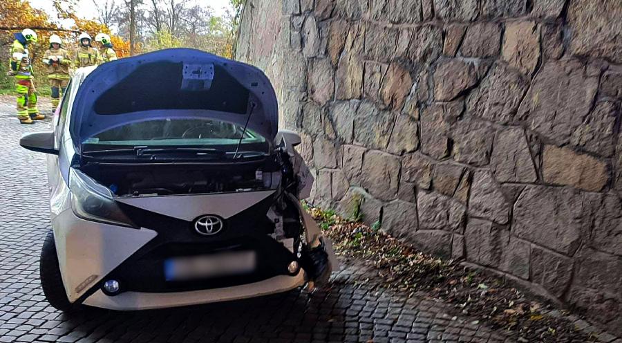 Zdarzenie miało miejsce przed godz. 14. Ze wstępnych informacji wynika, że młoda kobieta jadąca od Kamieńca Ząbkowickiego w kierunku Przyłęku straciła panowanie nad pojazdem i uderzyła w mur betonowy wiaduktu kolejowego. Podrożowała sama, była przytomna i komunikatywna. Znajduje się pod opieką zespołu ratownictwa medycznego.