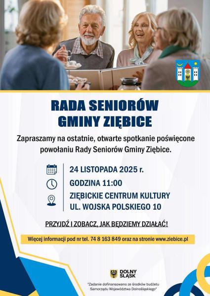W poniedziałek, 24 listopada o godz. 11 w Ziębickim Centrum Kultury odbędzie się ostatnie, otwarte spotkanie poświęcone powołaniu Rady Seniorów Gminy Ziębice.