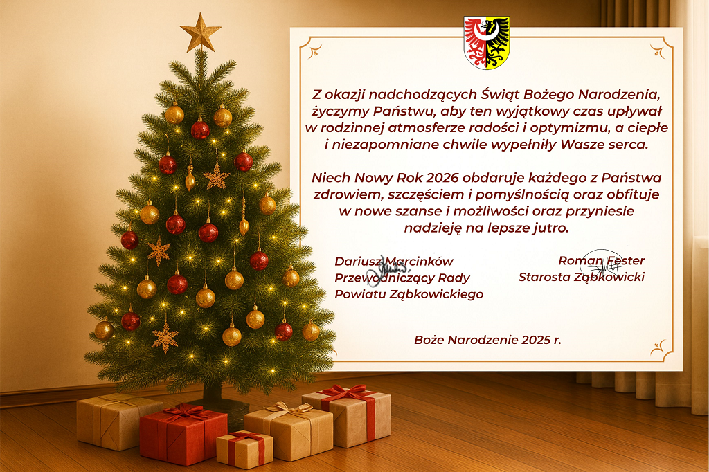 Życzenia świąteczne od władz Powiatu Ząbkowickiego fot.: Starostwo Powiatowe w Zabkowicach Śląskich