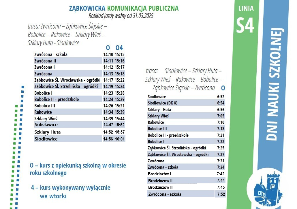 Od 7 stycznia obowiązywać będzie nowy rozkład jazdy tymczasowej zastępczej komunikacji autobusowej do szkoły w Zwróconej linii nr S4.