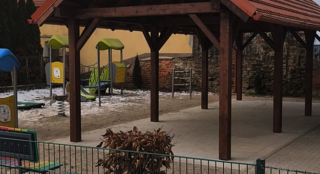 W ramach zadania zamontowano wiatę na istniejącym placu zabaw.