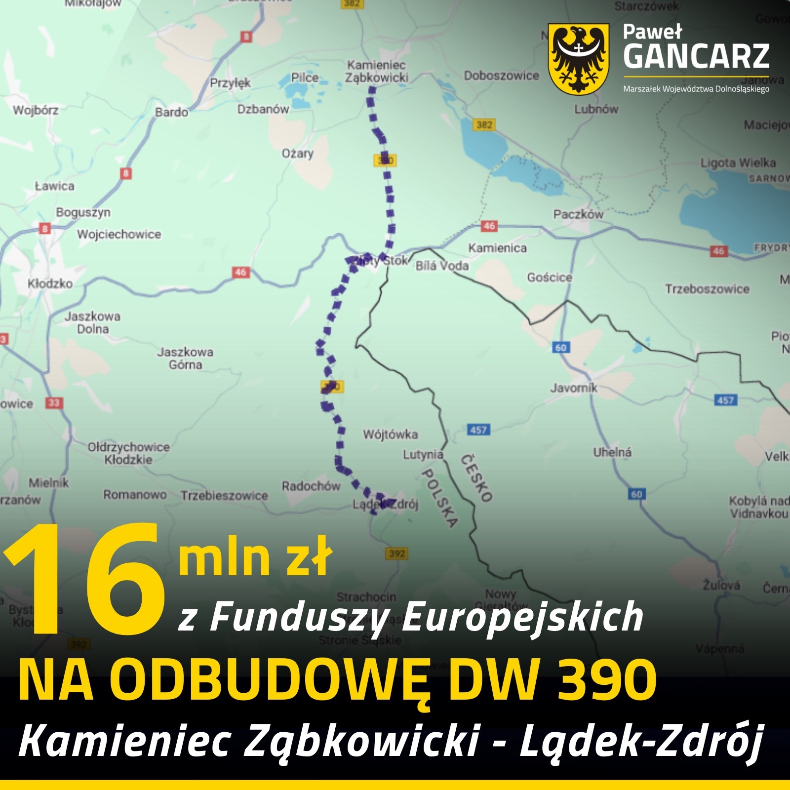 Zarząd Województwa Dolnośląskiego podjął decyzję o dofinansowaniu odbudowy drogi wojewódzkiej nr 390 na odcinku Kamieniec Ząbkowicki – Lądek-Zdrój.