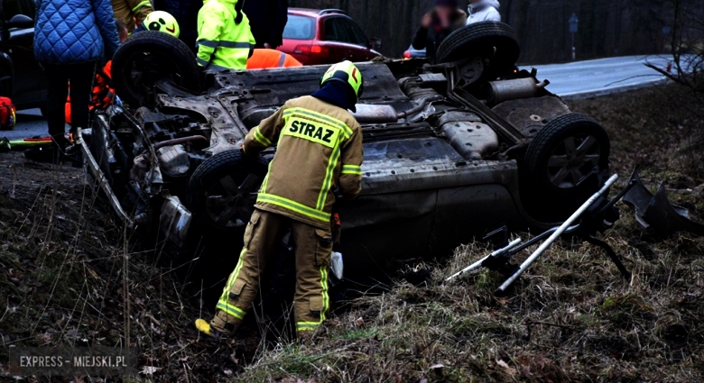 Zdarzenie miało miejsce 17 stycznia około godz. 16.30. Auto znajduje się na dachu poza drogą. Kierujący pojazdem opuścił je przed przybyciem służb.