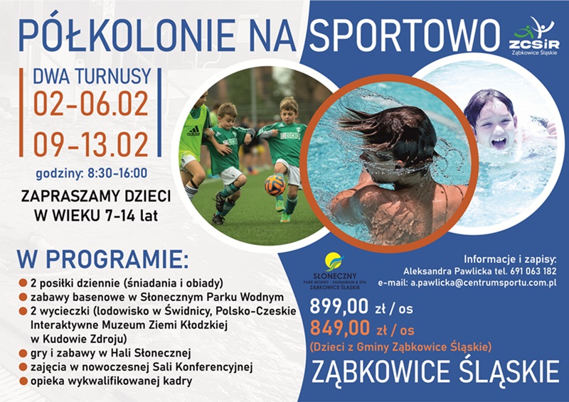 Ząbkowickie Centrum Sportu i Rekreacji organizuje zimowe „Półkolonie na sportowo”, skierowane do dzieci w wieku od 7 do 14 lat.