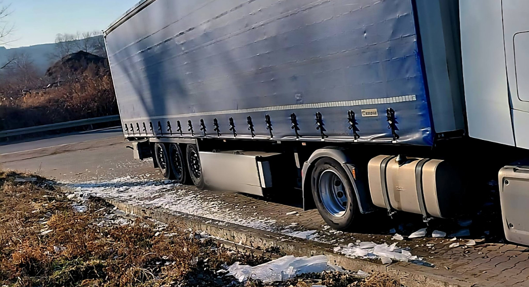 Na drodze krajowej nr 8 policjanci zatrzymali do kontroli kierowcę samochodu ciężarowego, z którego dachu odpadały duże tafle lodu.