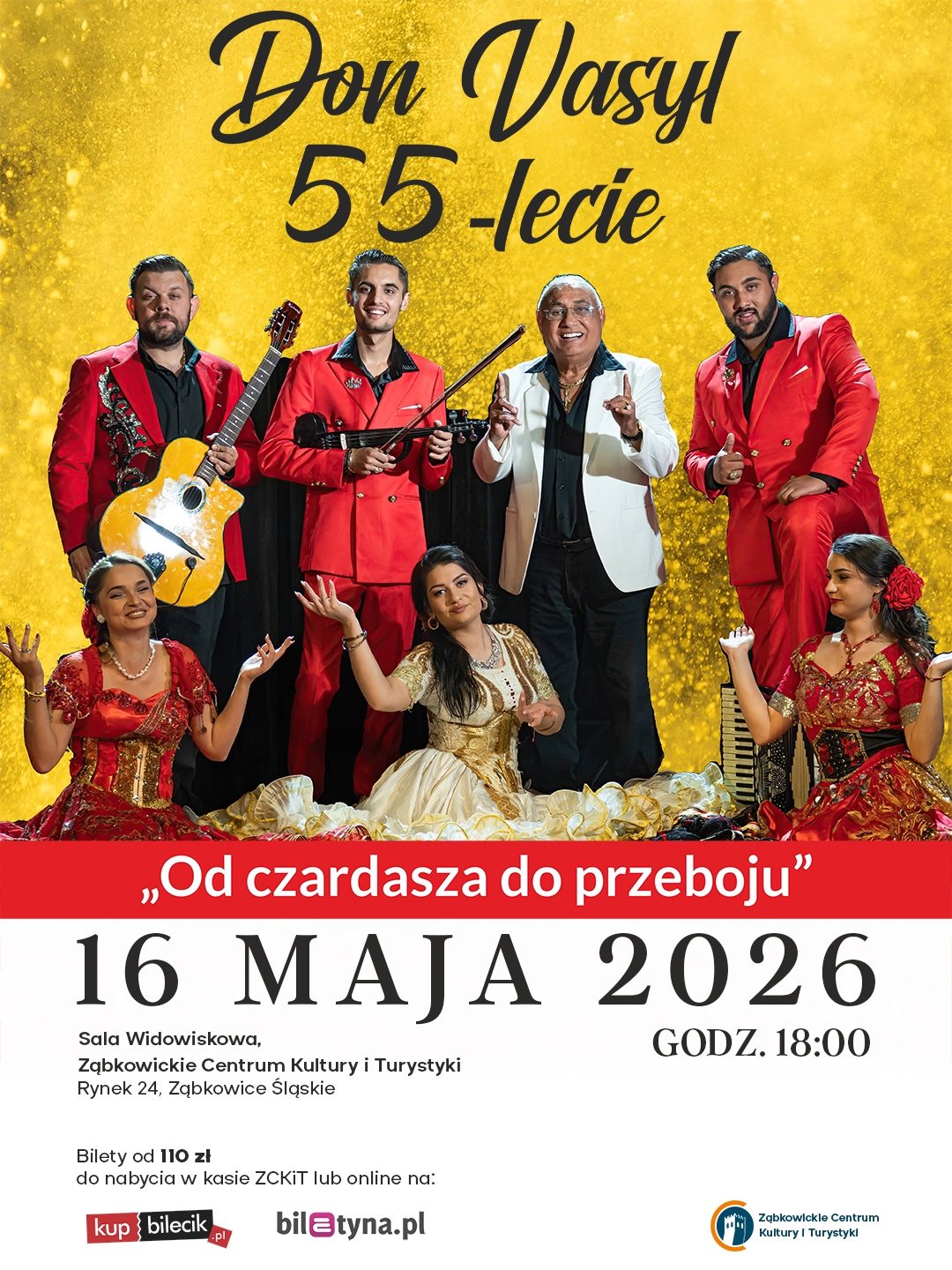 Ząbkowickie Centrum Kultury i Turystyki zaprasza na wyjątkowy, jubileuszowy, sentymentalny koncert w wykonaniu Don Vasyla z rodzimym zespołem oraz pięknymi tancerkami.