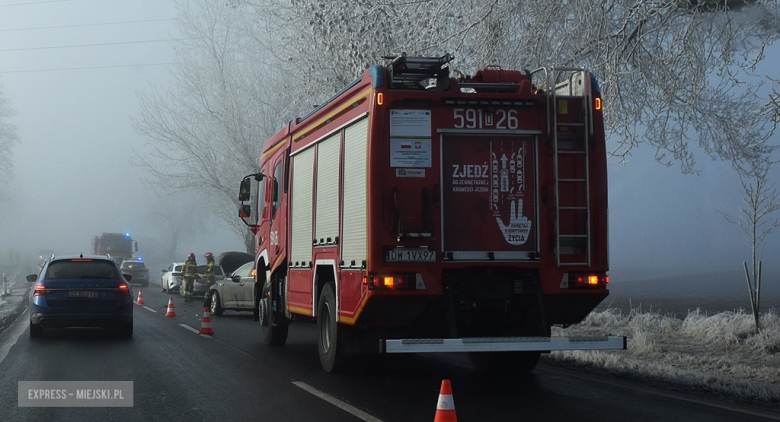 Ze wstępnych informacji wynika, że kierujący audi zjechał na przeciwległy pas ruchu i doprowadził do zderzenia z prawidłowo jadącym oplem.