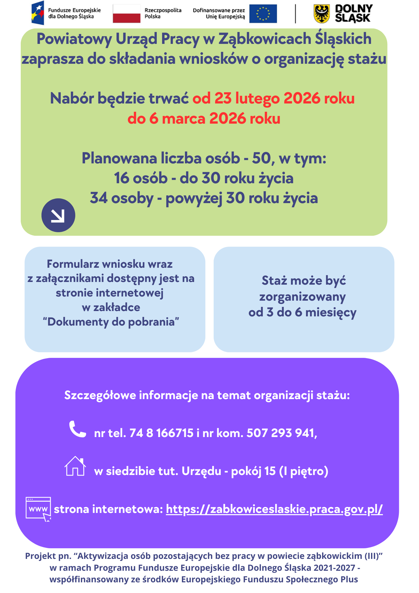 Powiatowy Urząd Pracy w Ząbkowicach Śląskich ogłosił nabór wniosków o organizację stażu. Dokumenty można składać od 23 lutego do 6 marca.
