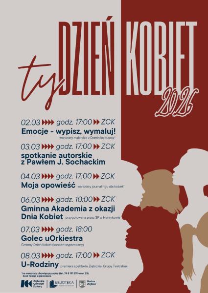 Gmina Ziębice zapowiada cykl wydarzeń kulturalnych organizowanych z okazji Dnia Kobiet.