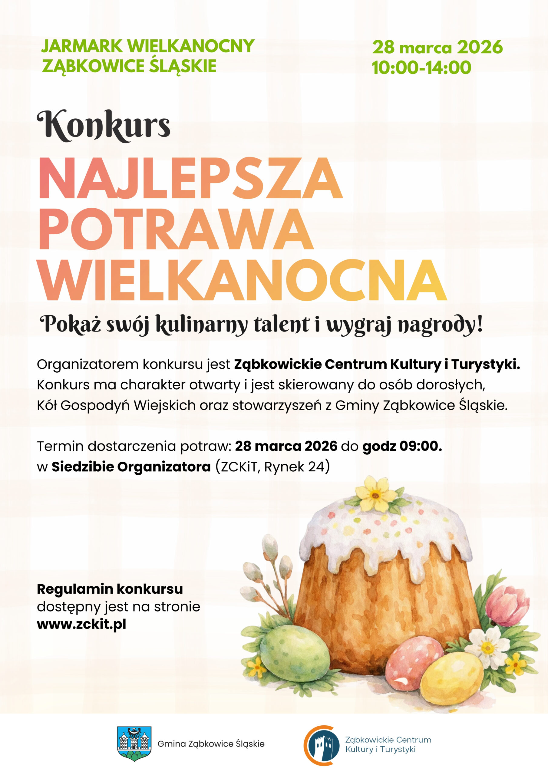 Ząbkowickie Centrum Kultury i Turystyki oraz Gmina Ząbkowice Śląskie zaprasza do udziału w konkursie „Najlepsza Potrawa Wielkanocna”.