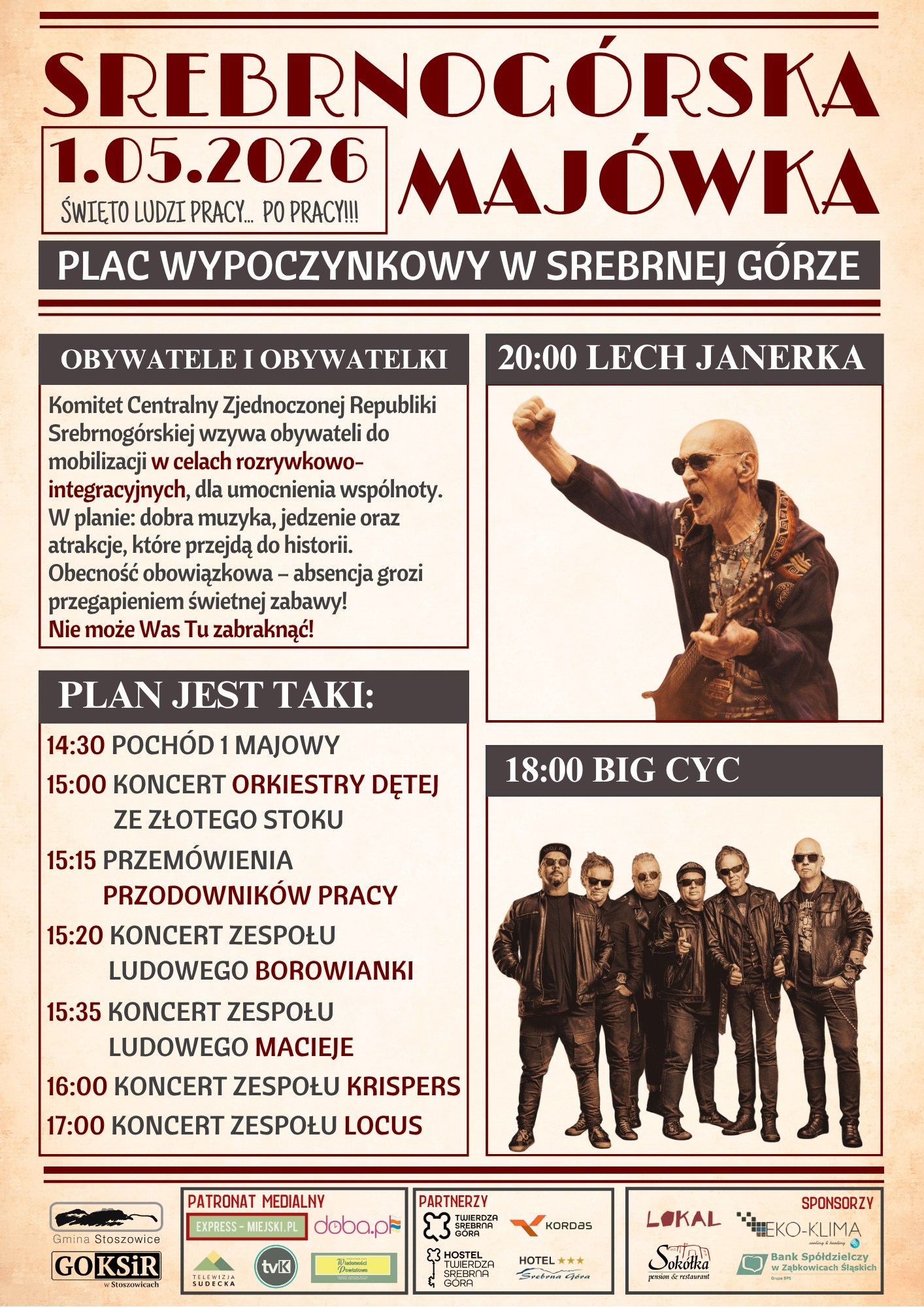 Czas więc odkurzyć galowe koszule, przygotować transparenty i nastawić się na dzień pełen uśmiechu. 1 maja Srebrna Góra po raz kolejny pokaże, że potrafi bawić się jak mało które miejsce w regionie.