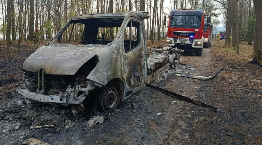 Informację straż pożarna otrzymała 13 kwietnia przed godz. 10. O zdarzeniu poinformowała ją straż leśna. Wewnątrz pojazdu ani w jego pobliżu nie przebywały żadne osoby. Po dotarciu na miejsce pierwszych zastępów pojazd typu laweta był całkowicie objęty ogniem, a pożar rozprzestrzeniał się w kierunku lasu.