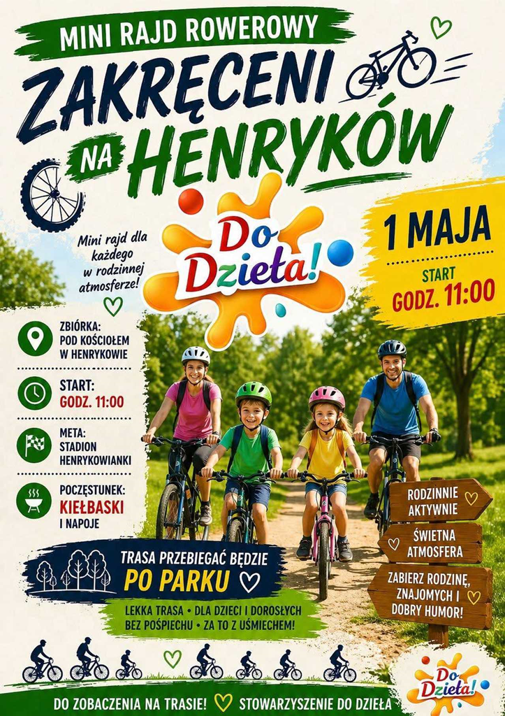 1 maja w Henrykowie odbędzie się „Mini Rajd Rowerowy – Zakręceni na Henryków”.