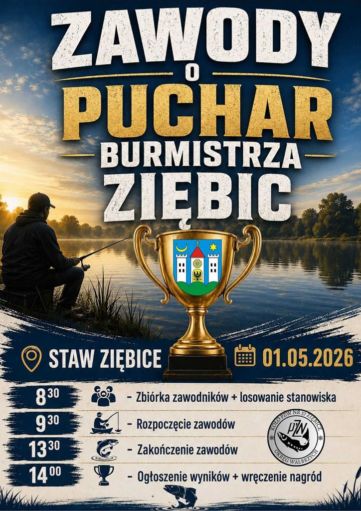 1 maja nad stawem w Ziębicach odbędą się „Zawody o Puchar Burmistrza Ziębic”.