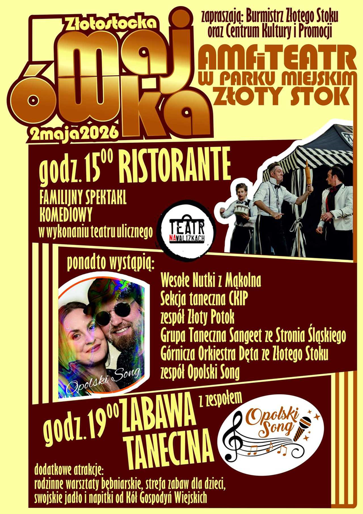 2 maja w amfiteatrze w Parku Miejskim w Złotym Stoku odbędzie się wydarzenie plenerowe „Złotostocka Majówka”.